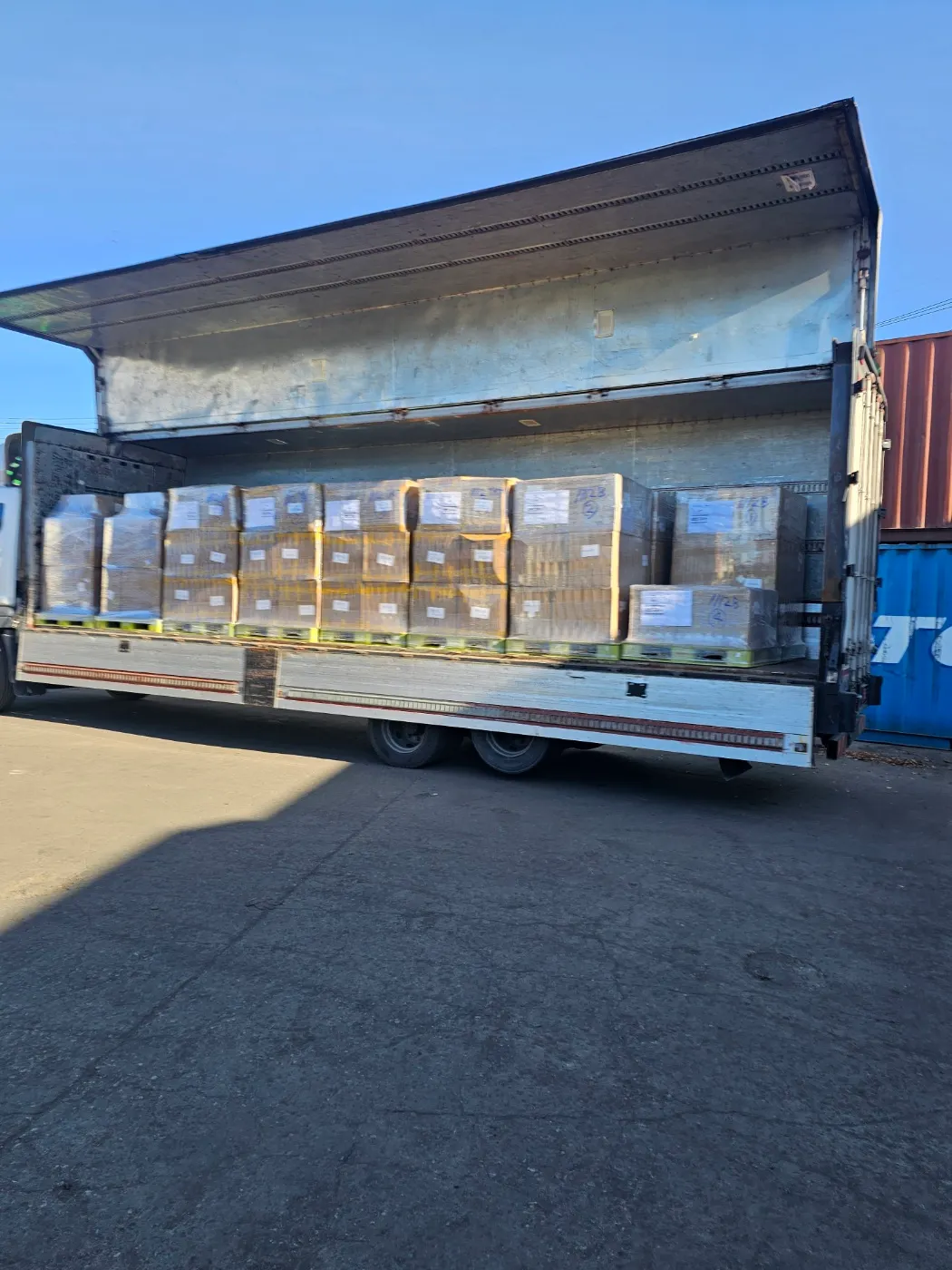 트리오링트 창고에서 쿠팡 밀트런 선적하는 사진
