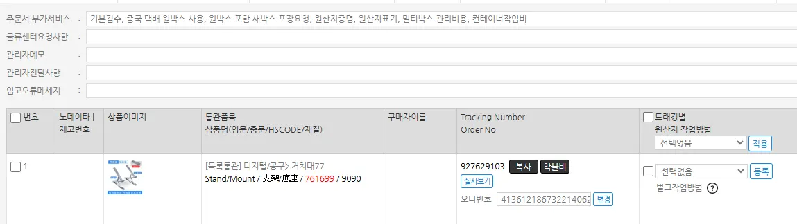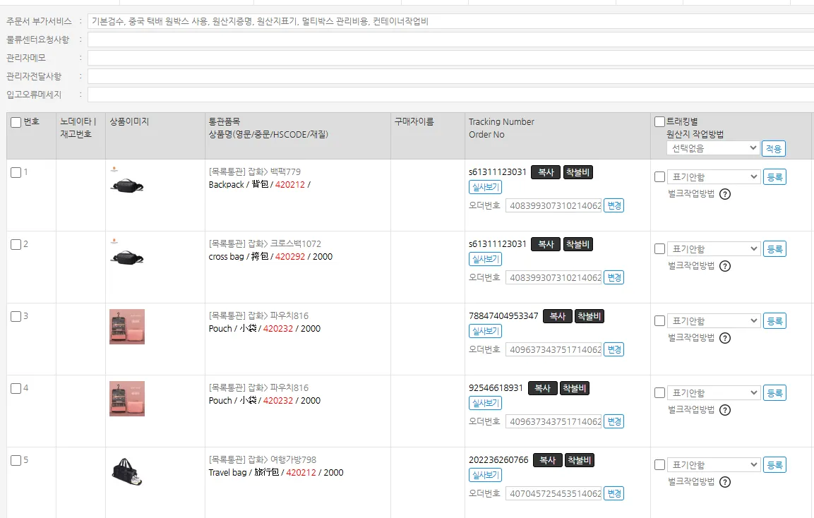 – HS 코드 숫자와 상품의 영문재질을 고객님이 직접 찾아서 물류요청란에 메모를 반드시 남겨 주셔야 합니다.
